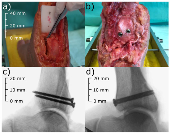 - Kohler, F.; Schenk, P.; Koehler, P.; Hofmann, G.; Biedermann, U.; Wildemann, B.; Graul, I.; Hallbauer, J. The role of the posterior malleolus in the treatment of unstable upper ankle joint injuries? A biomechanical study. Foot Ankle Surg. 2022, in press. [Google Scholar] [CrossRef] [PubMed]