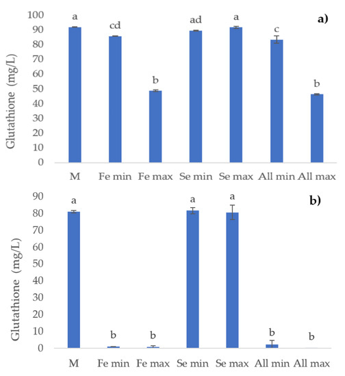 - Assuncao, M.; Martins, L.L.; Mourato, M.P.; Baleiras-Couto, M.M. Effect of selenium on growth and antioxidant enzyme activities of wine related yeasts. World J. Microbiol. Biotechnol. 2015, 31, 1899–1906. [Google Scholar] [CrossRef]