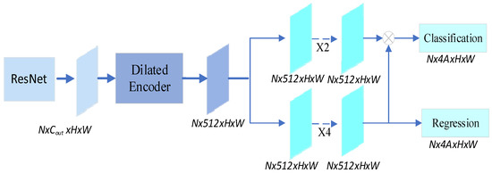 In Figure 1, ‘C5/DC5’ represents the output feature of the backbone at a downsample rate of [8,16,32], and ‘Cout’ means the number of channels of the feature. This study sets the number of channels to 512 for feature maps in the encoder and decoder. H × W refers to the height and width of feature maps.