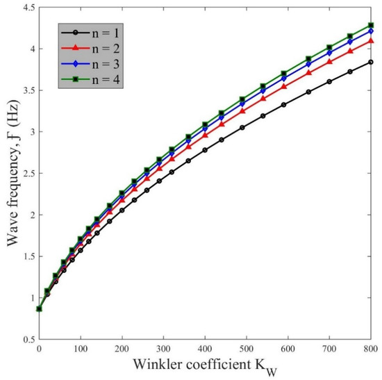 Wave frequency vs. Winkler parameter for various .