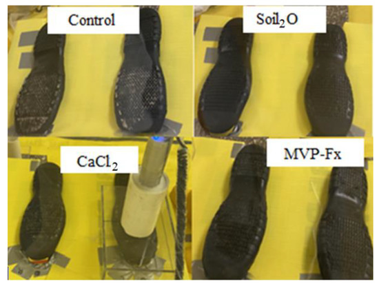 Efficacy of stabilization technologies for simulated foot traffic experiments, expressed as average ± standard deviation.