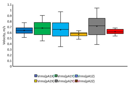 As part of the statistical analysis, we checked whether the obtained test results have a similar distribution to the norm and determined the test power. In order to test the normality of the distribution, the Shapiro–Wilk test was performed. The parameters given in the analysis of the normality of the distribution included the maximum velocities and RMS velocities as well as the maximum accelerations, and the RMS acceleration in the subsequent phases of the hand movement for all the carried tests. In performance research, there are backward and outward movements. In precision movement, only the movement to the target can be distinguished. Each of the movements can be divided into phases related to acceleration, steady motion, and deceleration, which are characterized by different values of speed and acceleration.