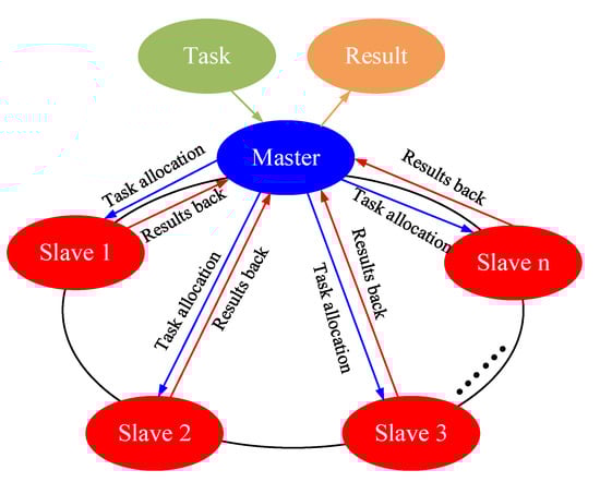 The RFPA3D system consists of pre-processing, elastic stress analysis, failure analysis, and post-processing. The RFPA3D procedures are completed with coordinated processing on an interactive Windows-Linux platform. The linear elastic stress analysis module is implemented on the Linux operating system cluster, and the other modules are completed on the Windows platform. After the data of the Windows platform are prepared, they are completely transferred to the Linux cluster, and the finite element parallel computing program on the Linux cluster is automatically started to complete the parallel computing. After the parallel calculation, it sends the results back to windows to view the results in real-time. A Hybrid OpenMP/MPI (message passing interface) parallel programming model is used to solve the finite element problem []. First, the whole domain is separated into local data sets scattered across the domain. A processing node is given to each partition, and MPI is used to communicate between processors and interconnect computing nodes between distributed memories. It is the most time-consuming process in the entire analysis process. It is also the core of the numerical realization, because each loading step requires a stiffness calculation and the resolving of the system equation. Parallelism and coarse-grained domain decomposition can improve the computational scale and speed of the master–slave solution.