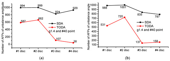 Equation (8) is the amplitude of rotor unbalance for each eccentric disc. Moreover, according to Equations (9) and (10) can be obtained, by means of which the angle of rotor unbalance for each eccentric disc can be calculated.