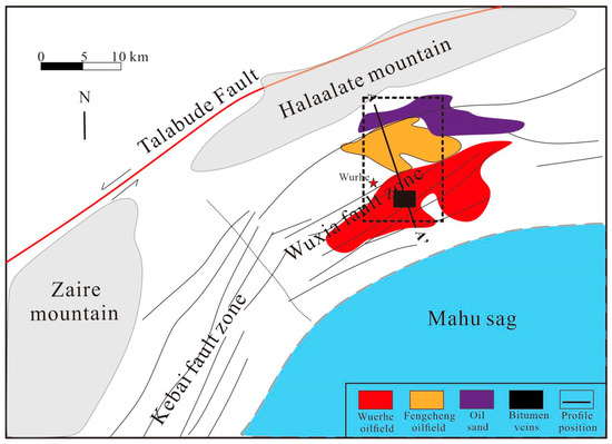 The Wuerhe area is located in Karamay City, Xinjiang Uygur Autonomous Region. It is located in the Wuxia fault zone of the northwest margin of the Junggar Basin, adjacent to the Mahu oil-rich depression in the South (Figure 1).