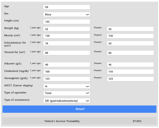 Ko, Y.; Shin, H.; Shin, J.; Hur, H.; Huh, J.; Park, T.; Kim, K.W.; Lee, I.-S. Artificial Intelligence Mortality Prediction Model for Gastric Cancer Surgery Based on Body Morphometry, Nutritional, and Surgical Information: Feasibility Study. Appl. Sci. 2022, 12, 3873. https://doi.org/10.3390/app12083873