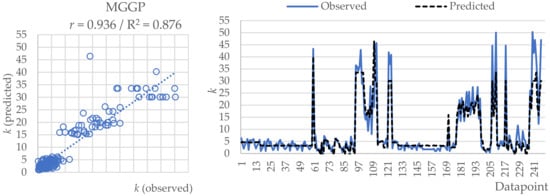 The third technique of study, MGGP, was employed to develop the MGGP model. The MGGP algorithm merges the model architecture choice proficiency of GP with the variable estimation ability of conventional regression to describe the nonlinear interactions [,].