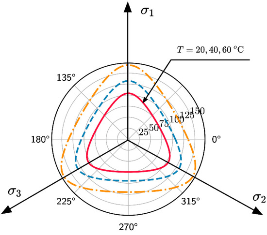 Matsuoka–Nakai criteria in the principal stress space with different temperatures.