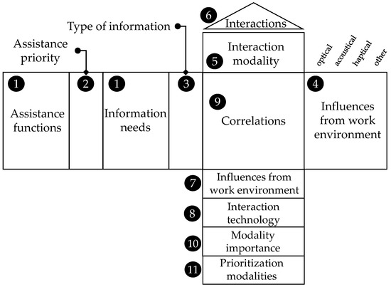 The method should enable the analysis of the underlying assembly process to obtain as holistic a system as possible and to understand the context of the work process. The method should also be able to support a make or buy decision regarding market-available assistance systems and ensure the participation of the workers within the design process. The method should also be able to correlate business and worker requirements with assistance functions and interaction modalities. In addition, the interaction modalities should be able to be considered and aligned with the information content for the worker as well as the influences of the work environment on the modalities.