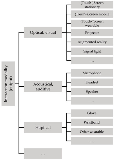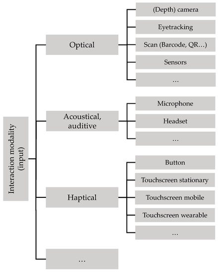 - Augstein, M.; Neumayr, T. A Human-Centered Taxonomy of Interaction Modalities and Devices. Interact. Comput. 2019, 31, 27–58. [Google Scholar] [CrossRef]