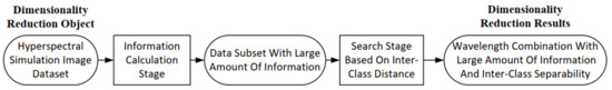 The specific objectives of this paper are as follows: Section 2 briefly introduces the IOIF algorithm for DR of HSI based on the amount of information and the GA-BPSO algorithm with the inter-class distance as the objective function; Section 3 proposes a novel wavelength selection algorithm that combines information amount and inter-class separability: LBI-BPSO; Section 4 introduces the sample measurement experiments and the process of establishing hyperspectral simulation images; Section 5 uses three methods for wavelength selection of simulated HSI, respectively. The DR performance and discussion of LBI are reported in this section, and a comprehensive comparison is made with the effect of IOIF and BPSO. Finally, conclusions and future works are presented in Section 6.