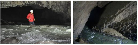 According to the field measurement, the minimum cross-sectional area of the underground river entering the cave hall is about 29 m2, rectangular in shape, 13 m wide and 2.23 m high. According to on-site observation, there are obvious and strong scouring traces on the wall of the intake, indicating that the intake must be filled with an underground river in rainy seasons. The maximum water inflow of the main pipeline intake of the underground river in the Karst hall, Q = 338 m3/s, can be obtained.