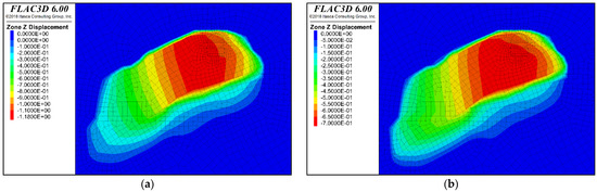 After the completion of tunnel excavation, grouting reinforcement was carried out for the backfill areas at the bottom and both sides, so the settlement of surrounding rock of each layer tended to decrease. Among them, the displacement of deep surrounding rock decreased significantly, and the maximum reduction degree was 10 mm. Therefore, it can be considered that grouting to the bottom of the tunnel can effectively improve the surrounding rock’s mechanical condition.