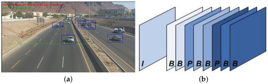 An MPEG video sequence has three types of frames: (a) an I-frame that represents the most important information of the sequence, (b) a P-frame that represents a predictive frame, and (c) a B-frame that is a bi-directional frame, as shown in Figure 1.
