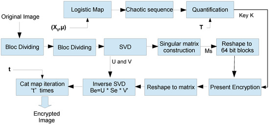 The proposed approach employs SVD to select that part of each frame of video feed that contains the most significant information. This selected part of the frame is encrypted using PRESENT block cipher [36] for which an 80-bit key is generated using a logistic map. The following are the steps of the proposed approach: