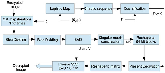 Figure 9 shows the flowchart of the decryption method, whereas Figure 10 shows the decryption results.