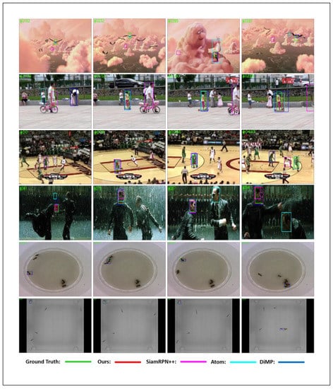 - Chen, Z.; Zhong, B.; Li, G.; Zhang, S.; Ji, R. Siamese box adaptive network for visual tracking. In Proceedings of the IEEE/CVF Conference on Computer Vision and Pattern Recognition, Virtual, 14–19 June 2020; pp. 6668–6677. [Google Scholar]