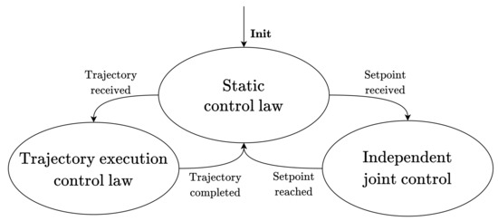 In most of these contexts, robots work together to accomplish the required tasks, interacting with the environment and with each other. The positioner–worker–watcher taxonomy proposed in [4] is useful to catch, in simple terms, the complexity of modern workcells: positioners are in charge of moving and positioning the workpiece, so that workers can interact with it (usually by exerting force on it, such as in drilling, cutting, soldering); watchers carry sensors to make inspection tasks or even generate trajectories for the other robots in case of occlusions and/or unforeseen events. The tasks usually require frequent interactions with the environment, and changes in the environment itself have to involve changes in the robots’ behavior. Heterogeneous hyper-flexible robotic workcells are a further development of the concept above, where different types of robots work together to accomplish the desired tasks and provide the system with the necessary flexibility, making it adaptable to different applications without requiring excessive human intervention [5]. Ideally, on the one hand, it should be possible to replace, in no time, the robots with others of a different brand or model while keeping the same control algorithms, or, on the other hand, to assign the same robot with diverse tasks requiring very different control strategies and parameters.