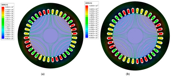 Flux line distribution: (a) initial motor; (b) proposed motor.