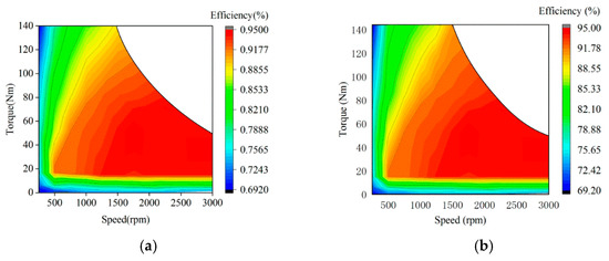 Efficiency map: (a) initial motor; (b) proposed motor.