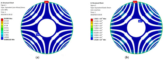 Stress analysis of proposed motor: (a) stress diagram; (b) deformation diagram.
