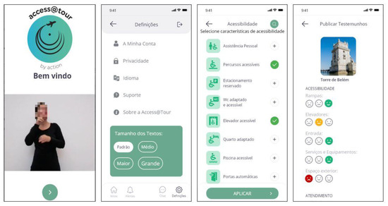 Despite the relevant contributions of this study, some issues and limitations can be pointed out. Thus, this kind of technological solution may also have some issues regarding, for example, the security and vulnerability of data that may be exposed to third parties. In this respect, such a solution should have an associated security protocol that ensures not only the general data protection regulation, but also uses encrypted data exchange with secure access by authorized users. In this study, only platforms built especially for accessible tourism were selected to be analyzed. There are several other platforms that can contribute to more accessible conditions, for example, platforms that identify places that are wheelchair friendly (Wheelmap). However, their main goal is not to promote accessible tourism products, and therefore, they were not included in the analysis process. Furthermore, due to the limitations of the prototype version of access@tour by action, the interaction between the different interfaces could not be displayed.