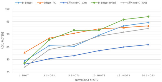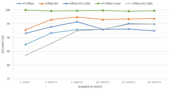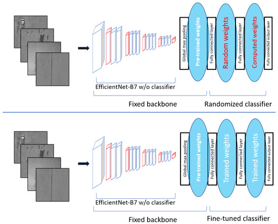 Since its introduction, there is a very wide range of applications where EfficientNet or its variants showed very good accuracy, e.g., mushroom recognition [43], skin disorder recognition [44], iris recognition [45,46], forest fire detection [47], steganalysis [48], or plant disease detection [49], just to mention a few recent articles. Our experiments, detailed in Section 5, show that EfficientNet-B7 outperforms all previously published architectures for both NEU and X-SSD datasets. Moreover, in the next subsection we use EfficientNet-B7 (pre-trained on ImageNet) as the backbone of our proposed architecture for few-shot learning.