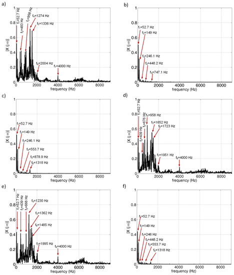 The measurement of one experimental mode took t = 6 s at a sampling frequency of = 18,000 Hz and a sampling period of = 55.5 s. All regime measurements were performed by an analogous principle. A segment with the number of samples N = 2048 was processed from the entire measured signal.