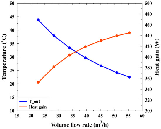 −2. The heat convection between the surface cavities and the air was enhanced as the air mass flow rate increased, and the temperatures of the exterior surface of the massive wall and air cavity surfaces were decreased. Hence, the outlet temperature of the air decreased. However, the heat gain, which included transmission losses, increased.
