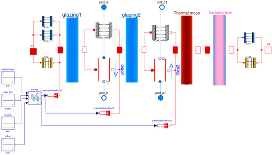 In choosing the most suitable library for the dynamic thermal simulation of our studied solar system, reference was made to the study conducted by Tittelein et al. In this study, a comparison of seven free Modelica libraries (Aixlib, Annex60, ATPlus, Buildings, BuildingSystem, BuildSysPro, IDEAS) was performed, mainly focusing on model functionality. The example of the integration of the parietodynamic window was presented. The model to be integrated and the hosting library must have the same connectors [