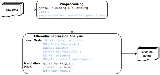 - Zhu, Y. Bioconductor-DEqMS: A Tool to Perform Statistical Analysis of Differential Protein Expression for Quantitative Proteomics Data. R Package Version 2019, 1, 10-18129. [Google Scholar]