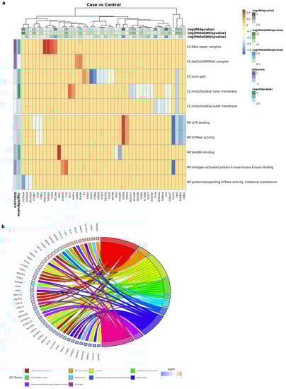 Functional analysis of results: over-representation pathway analysis. (a) case vs. control (b) Go Terms.