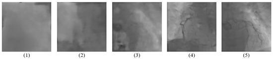 The N value is an adjustable parameter that improves security when being set to lower values. As a function of this parameter, the underlying information is preserved in different degrees, presumably retaining enough details in the images for DL-based applications. Figure 4 displays a comparison between an angiographic frame Figure 4a and the obfuscated counterparts when bijective Figure 4b or non-bijectiveFigure 4c–e mapping is applied. The obfuscated samples are rescaled in interval to allow a better visual comparison.