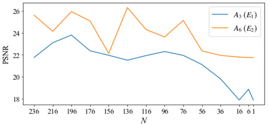 Influence of parameter N on PSNR in () and (), respectively, configuration experiments.