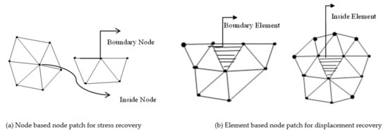 - Ahmed, M.; Singh, D.; AlQadhi, S.; Alrefae, M.A. Improvement of the Zienkiewicz–Zhu Error Recovery Technique Using a Patch Configuration. Appl. Sci. 2021, 11, 8120. [Google Scholar] [CrossRef]
