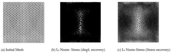 - Rodenas, J.J.; Tur, M.; Fuenmayor, F.J.; Vercher, A. Improvement of the super-convergent patch recovery technique by the use of constraint equations: The SPR-C technique. Int. J. Numer. Meth. Eng. 2007, 70, 705–727. [Google Scholar] [CrossRef]