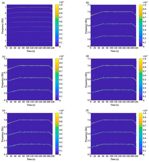 TFR techniques offer another approach to sharpening the time-frequency representation while keeping the temporal localization and can extract improved frequency resolution [,]. Based on the STFT frame, the implementation process is as follows.