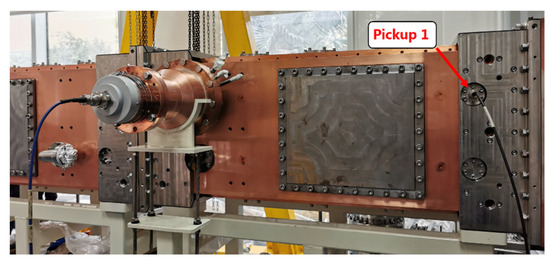 The cavity power was measured by reading the scope amplitude of the RF pick-up (50 Ω impedance). The coupling factor of the pick-up can be measured by a two-port network composed of a coupler and a pick-up, as shown in Figure 6. The coupling factor of the pick-up is given by: