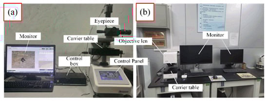 Measuring equipment: (a) MH500 microhardness tester; (b) 3D laser microscope.
