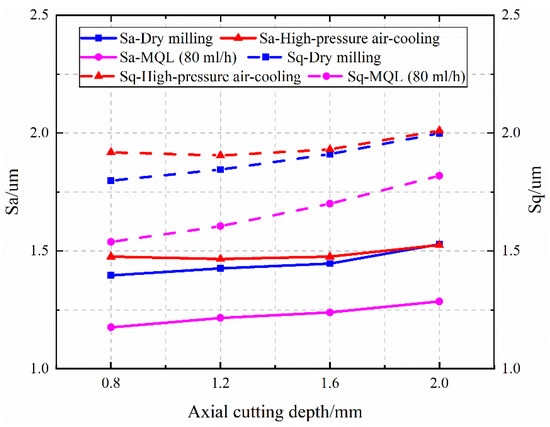 The effect of axial cutting depth on surface roughness Sa and Sq. .