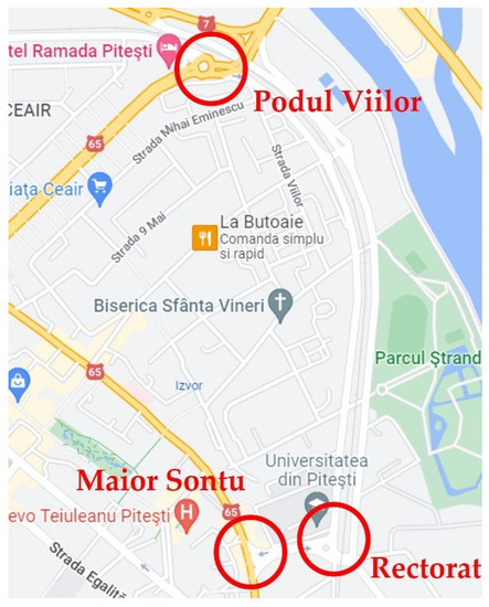The measurements were carried out at the 3 most important intersections in the central part of Pitesti [35] (Figure 3):