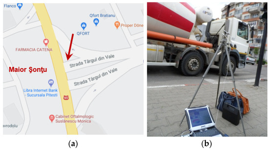 The measurements were taken at the Maior Şonţu traffic light intersection in Pitesti, on a working day around 6.30 p.m., when there is the evening traffic peak and there are also traffic measurements made during in the same time [35], useful for further analysis of the relationships between road traffic and road noise in the area.