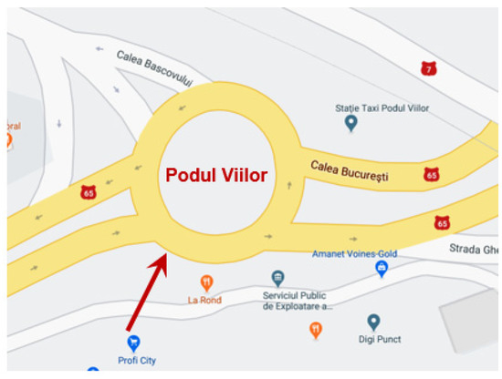 The measurements were made on a working day, around 4.30 pm in the Podul Viilor roundabout intersection, as shown in Figure 7.