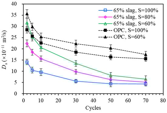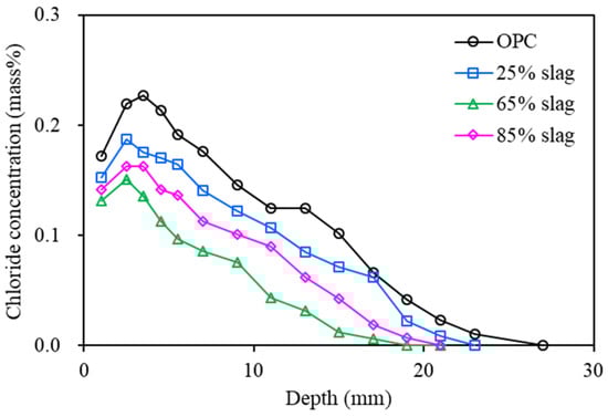 - Between slag and OPC binders, the difference in the chloride transport driven by capillary action gradually diminished with a decrease in the saturation level. The use of slag greatly enabled the promotion of the resistance to chloride ingression under drying–wetting cycles, in particular for long-term exposure.