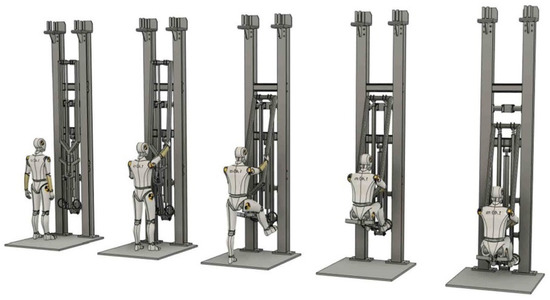 Figure 10 shows the positions of the chair and the human body at different instants of the shelter vertical fall (situation 1). Since the results for all the considered situations are similar regarding the movement of the chair and body, those images are also representative of the other fall situations.
