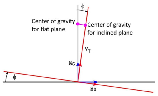 Among the advantages of the proposed robot concept is its ability to walk on a plane that has a certain ascent or descent in the walking direction. This ascent or descent is actually the rotation of the coordinate system g0 at its origin around the z-axis. The rotation is determined with respect to the coordinate system gG by the angle ϕ, which is shown in Figure 5.