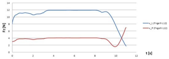 The matrix gCH_P,g0 (11) and the height of the right foot above the pad yP are used to derive the vP coordinate. Subsequently, Equation (45) expressing the left motor extension vL is inserted into Equation (46):