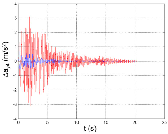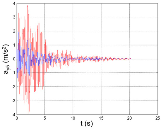 The obtained time histories are plotted in Figure 5, Figure 6, Figure 7, Figure 8, Figure 9, Figure 10, Figure 11, Figure 12, Figure 13, Figure 14, Figure 15, Figure 16, Figure 17, Figure 18 and Figure 19, while the peak values of the relevant parameters (yj, Δyj, Δyj (j = 1,2, …, 5)) are recapped in Table 3.