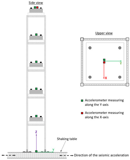 - The floor acceleration, which is intended as the acceleration (yj) of the j-th floor (j = 1,2, …, 5) with respect to the ground and along the direction of the excitation (y-axis);