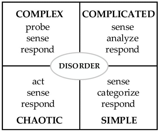 - Snowden, D.J.; Boone, M.E. A leader’s framework for decision making. Harv. Bus. Rev. 2007, 85, 68. [Google Scholar]